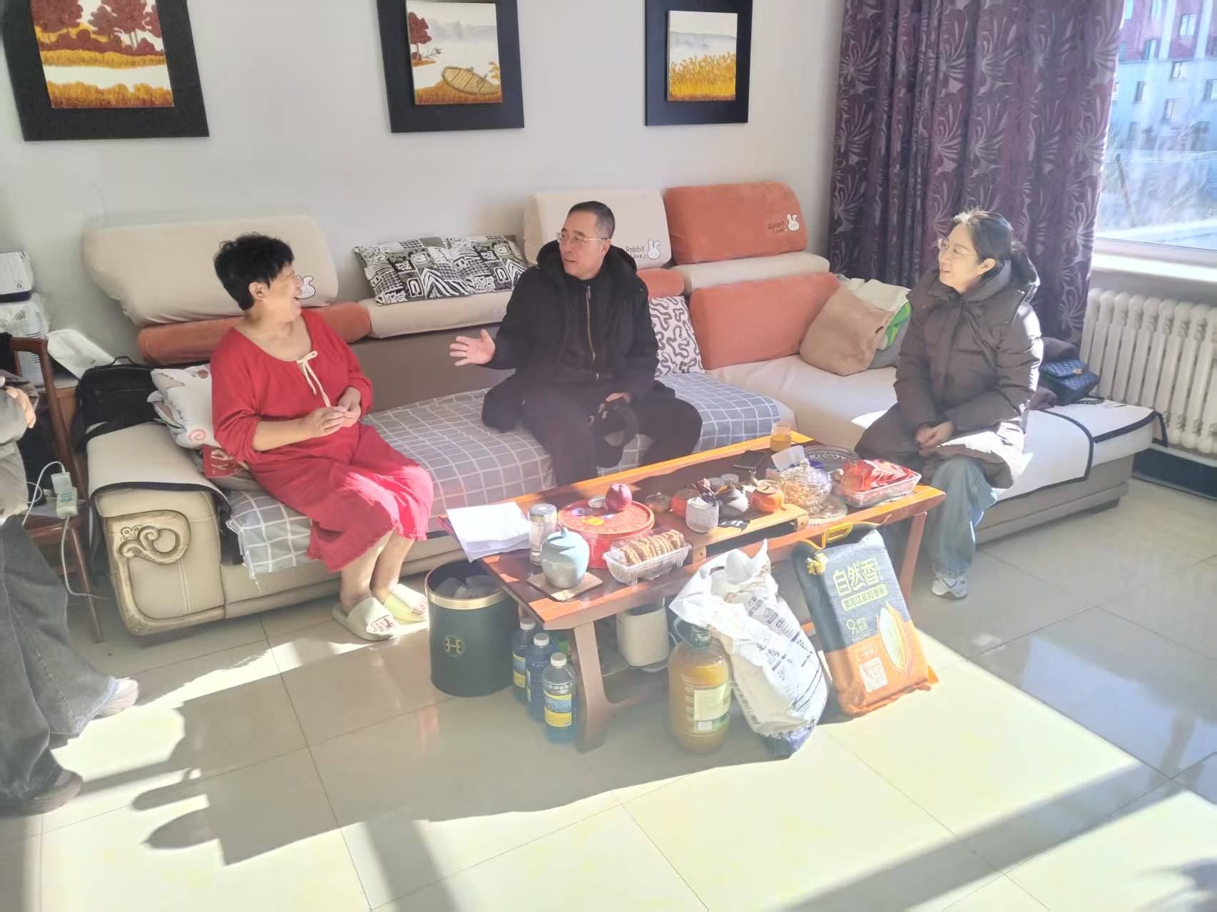 活动中,科技局党员干部会同社区工作人员,走访慰问了多户困难家庭和老党员代表。每到一户,党员干部都与他们亲切交谈,详细询问身体状况、家庭生活和实际困难,认真聆听他们的心声与需求,并送上米、面、油等生活必需品,致以诚挚的新春祝福。