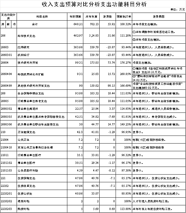 1.应用研究(款)机构运行(项)。年初预算363.66万元,支出决算339.79万元,相比减少23.87万元,减少6.56%,完成年初预算的93.44%。决算数与年初预算数的差异原因:本年度退休5人,人员经费减少。