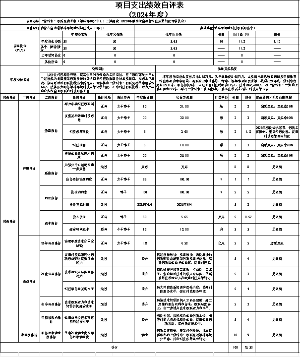 ①“蒙科聚”创新驱动平台(网上十大博彩公司网站分中心)二期建设(2024年第四批自治区科技成果转化专项资金)自评综述:根据年初设定的绩效目标,项目自评得分75.50分。该项目总预算50万元,2024年支出5.65万元,执行率11.30%,完成预算的11.30%。